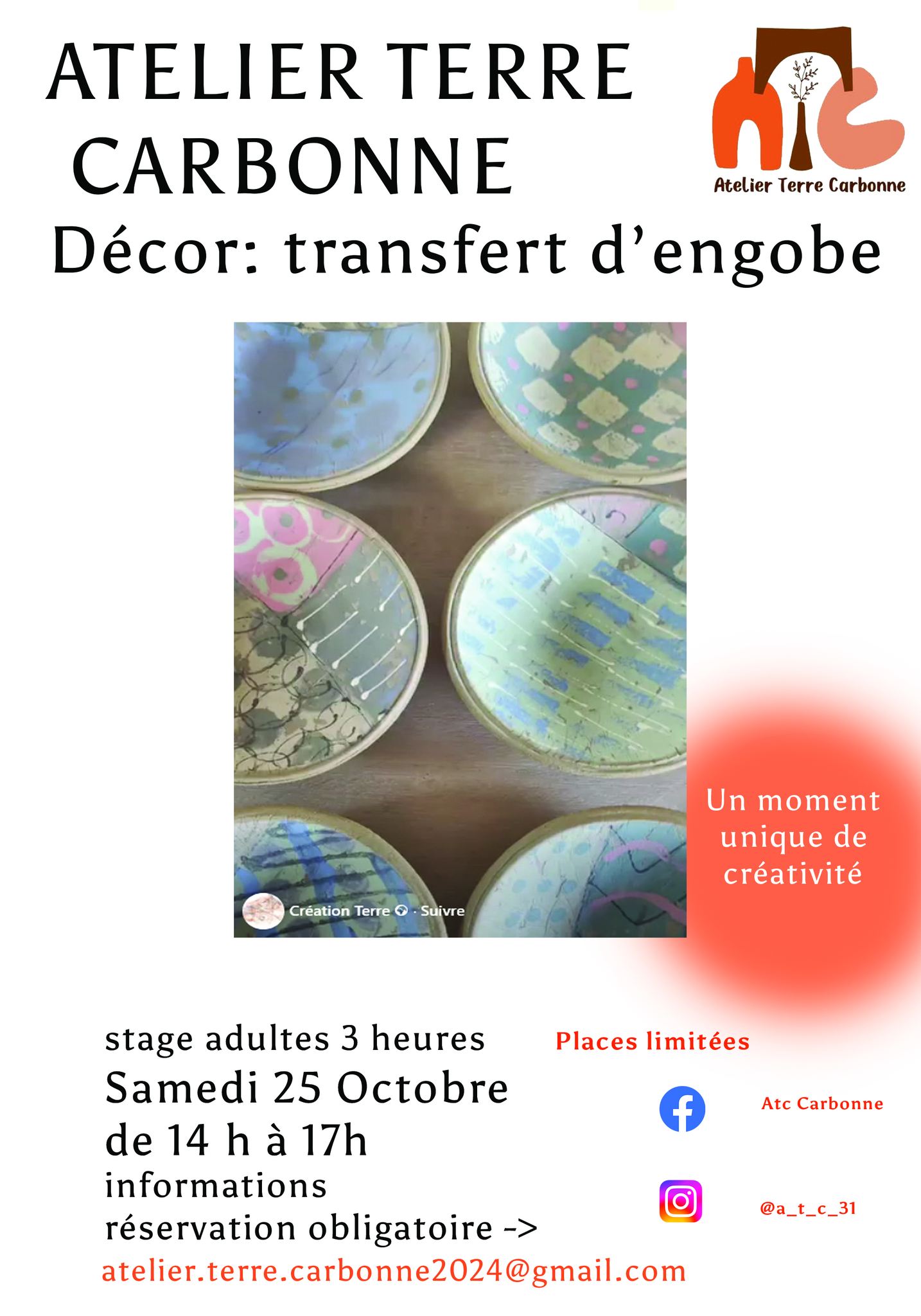 Rendez-vous le samedi 25 octobre de 14h à 17h pour un stage autour du décor, transfert d'engobe.