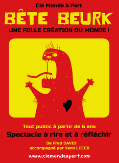 « ET SI AU COMMENCEMENT, LA TERRE ETAIT PLATE ! Tout commence ainsi… On va en visiter, si vous le voulez bien, les deux faces… L'une sèche, l'autre humide : Et voilà « le délire » qui s'installe… Une bête BEURK engendrée par nos monstres et nos peurs contemporaines… Une bête BEURK qui dévore tout sur son passage… Une princesse Marjolaine, aussi belle et bonne que naïve. Et voilà le temps d’une rencontre improbable ! Et le monde change… Jusqu'à quand ??? La BÊTE BEURK ne se cache-t-elle pas toujours dans nos têtes »