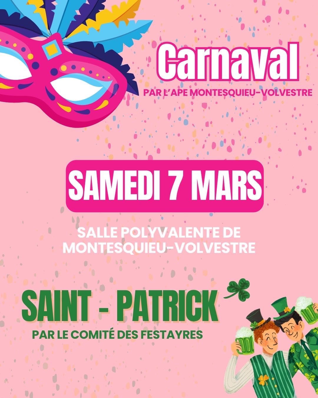 Journée Carnaval organisée par l'Ape de Montesquieu-Volvestre et la Saint Patrick proposée par le Comité des Festayres.