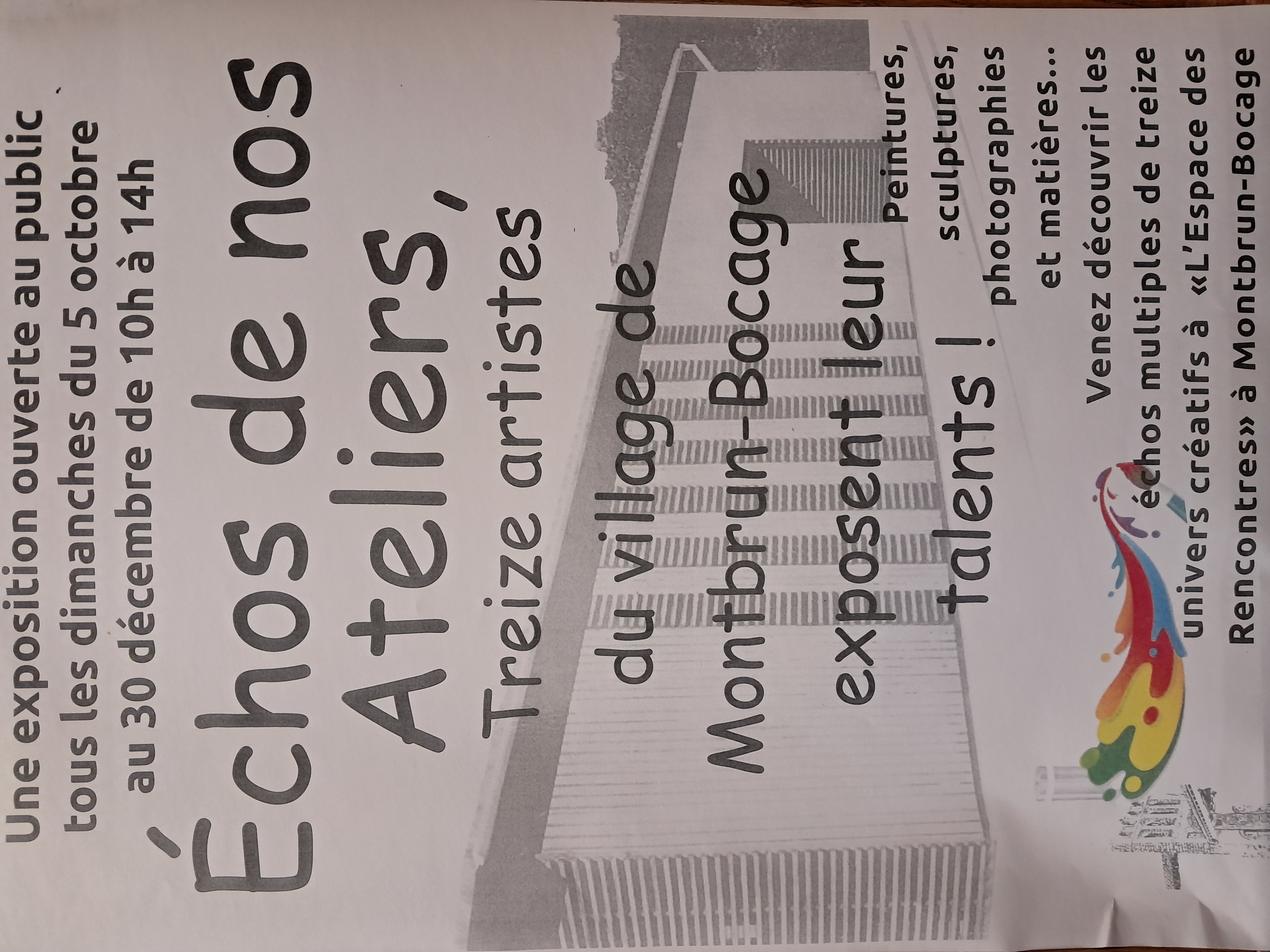 L'exposition « Échos de nos ateliers » vous présente les travaux de treize artistes de Montbrun-Bocage.