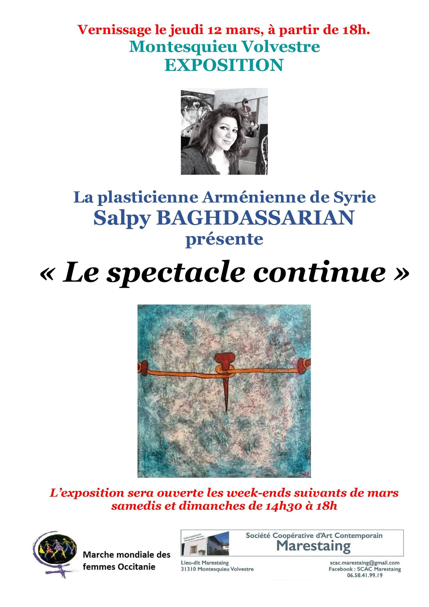 Pour celles et ceux qui ne pourront venir au vernissage nous vous accueillerons pendant les week-ends suivants du mois de mars, entre 14h et 18h30.