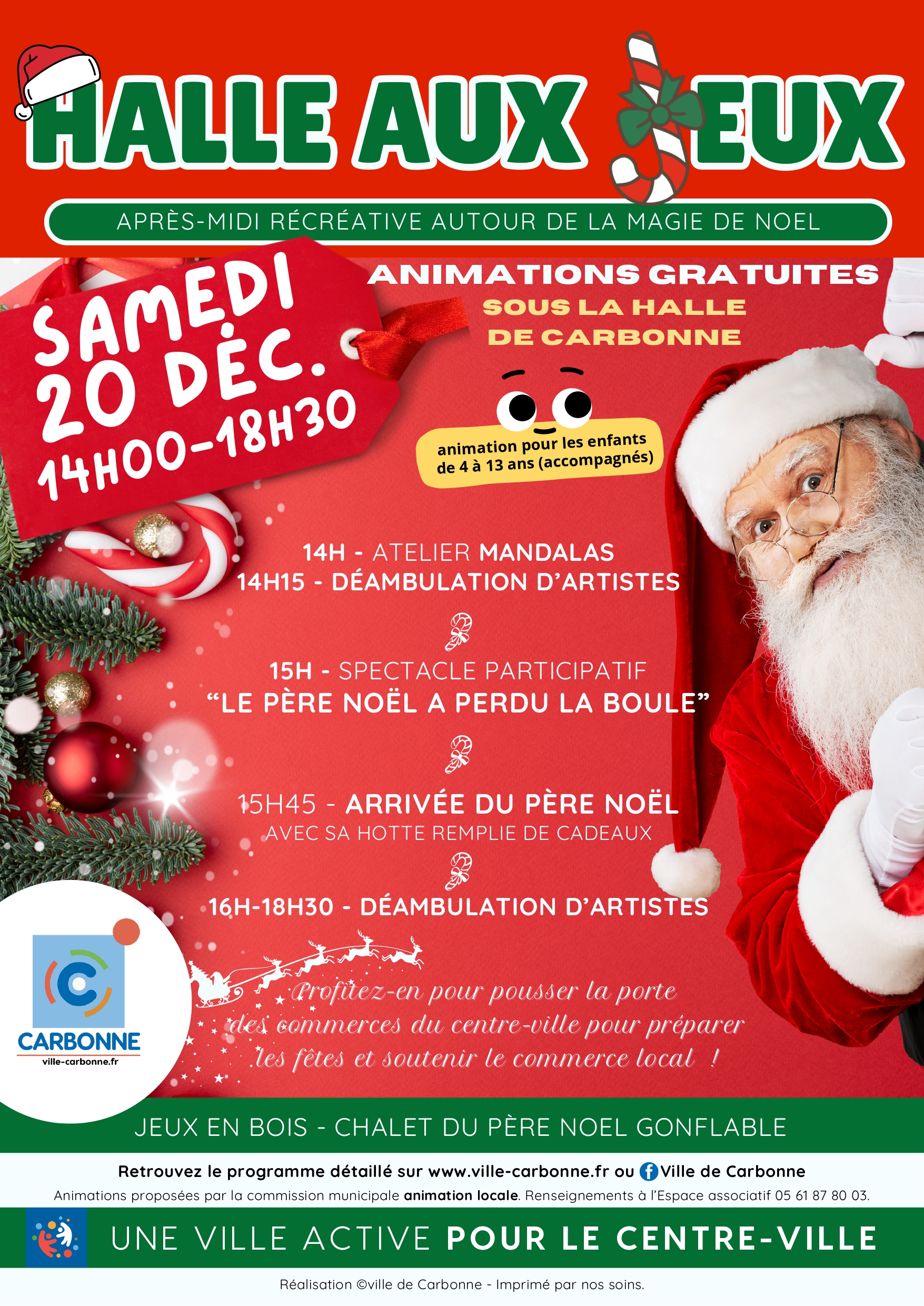 - 15h : Spectacle participatif "Le Père Noël a perdu la boule"