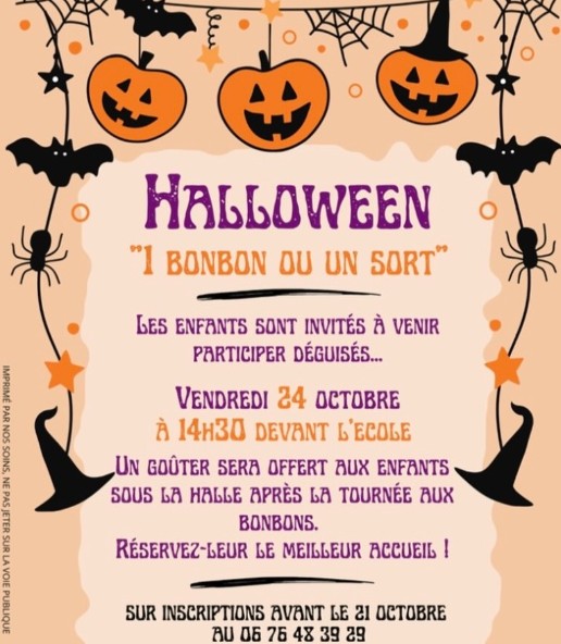 UN GOÛTER SERA OFFERT AUX ENFANTS SOUS LA HAGLE APRÈS LA TOURNÉE AUX BONBONS.