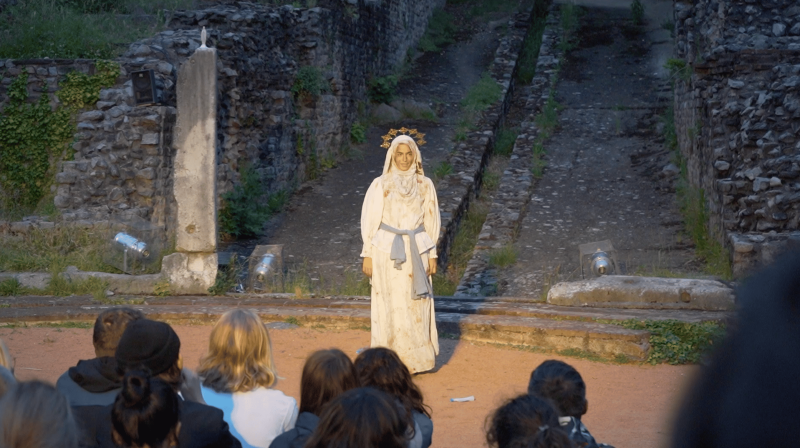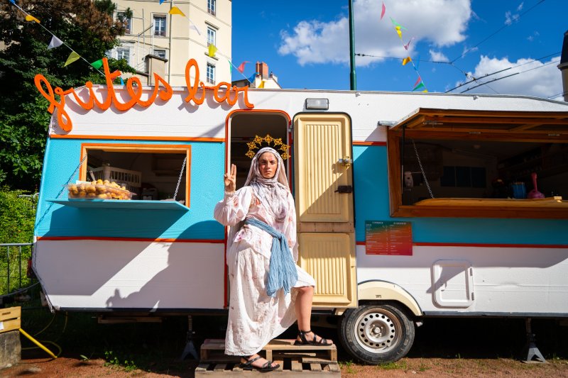Cette sœur imaginaire s’inspire des figures de femmes bien réelles qui ont jalonné l’histoire familiale de l’artiste, loin de la sainte image de Marie. Dans cette affabulation (non sans humour !) autour de l’enfantement et de la douleur, trash et tendre à la fois, la comédienne, elle-même née à Lourdes, souhaite rendre (ô miracle !) le pouvoir aux utérus créateurs.