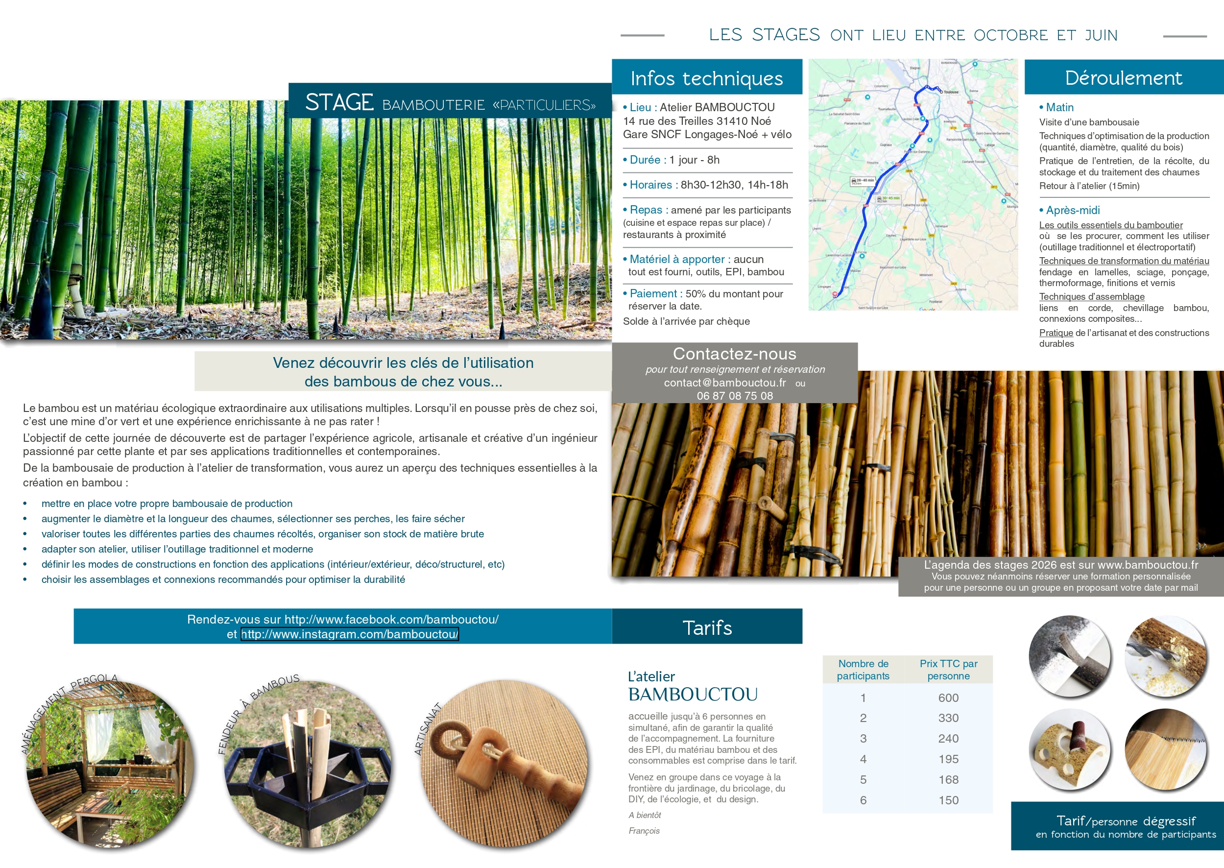 Stage découverte pour particuliers proposé par François de l'Atelier Bambouctou.