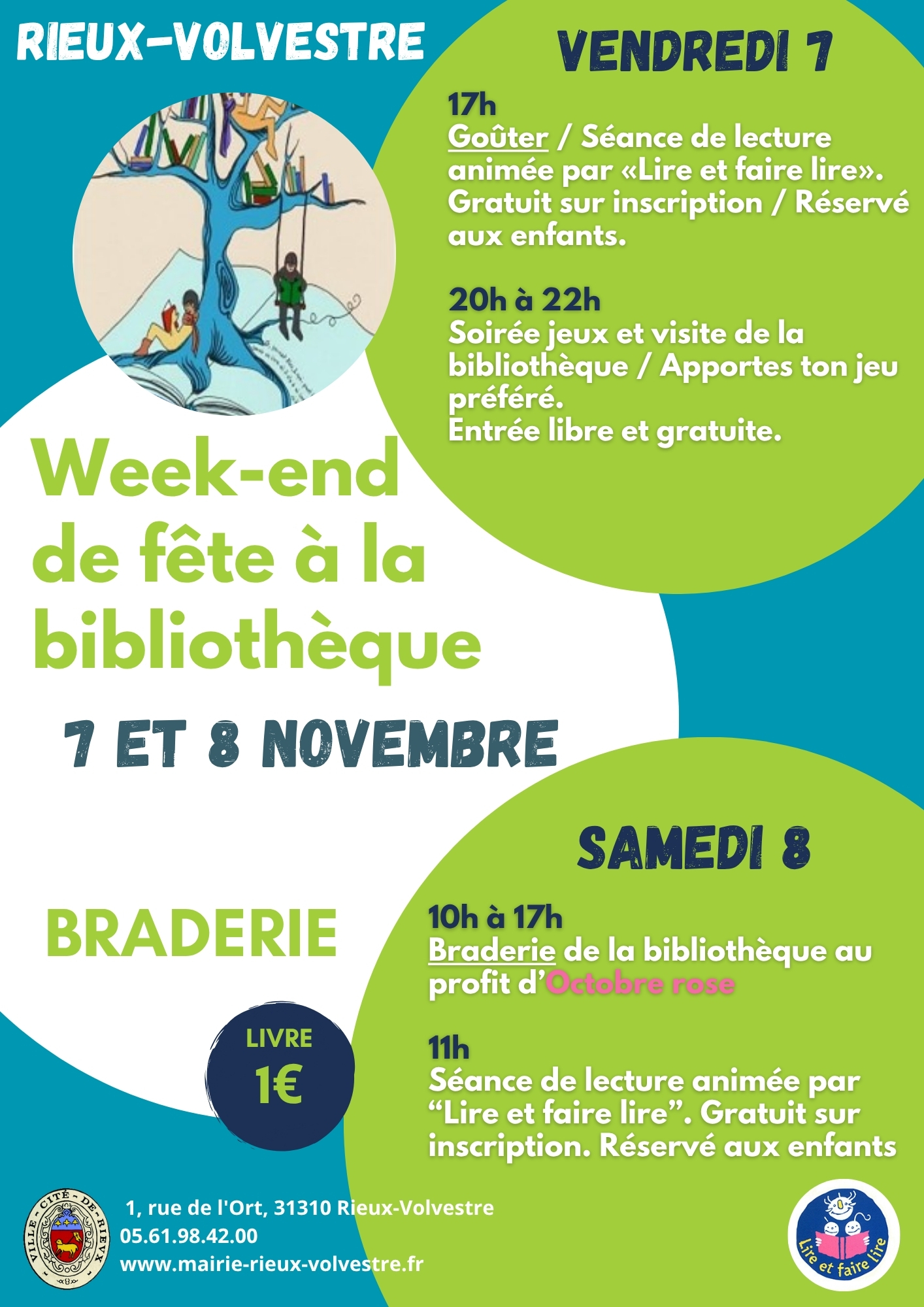 - 10h à 17h : Braderie de la bibliothèque au profit d'Octobre rose